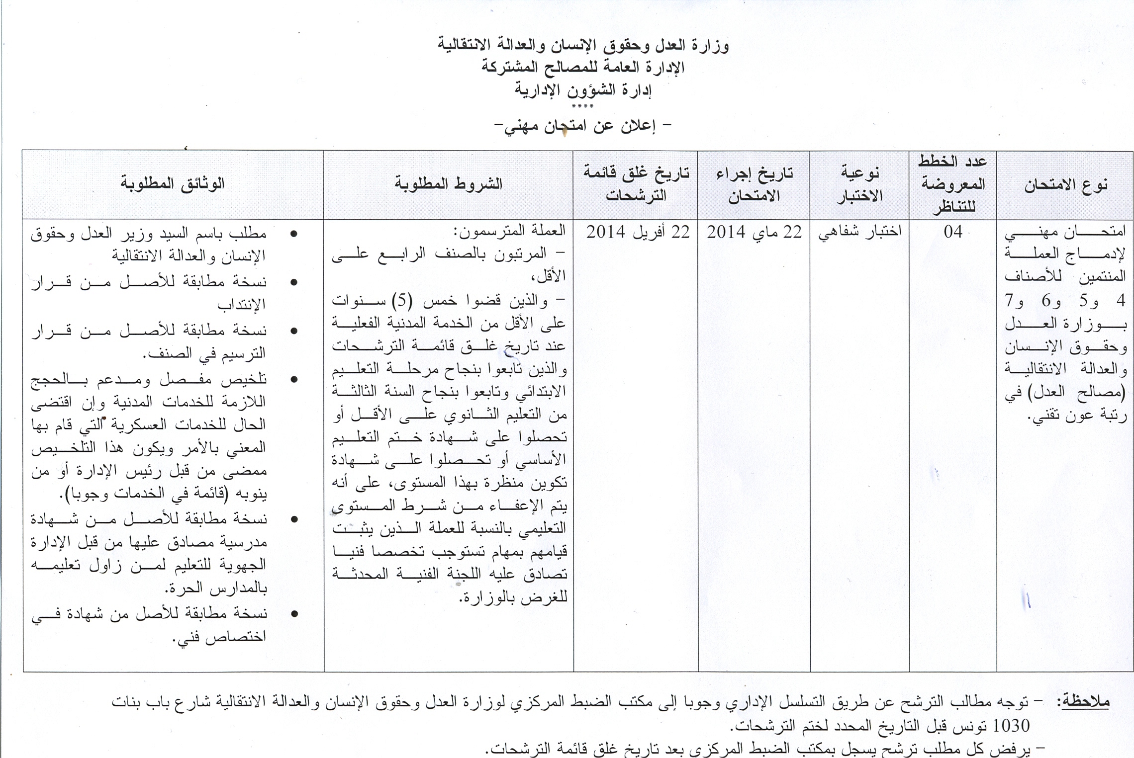إعلان عن إمتحان مهني لإدماج العملة المنتمين للأصناف 4و5و6و7